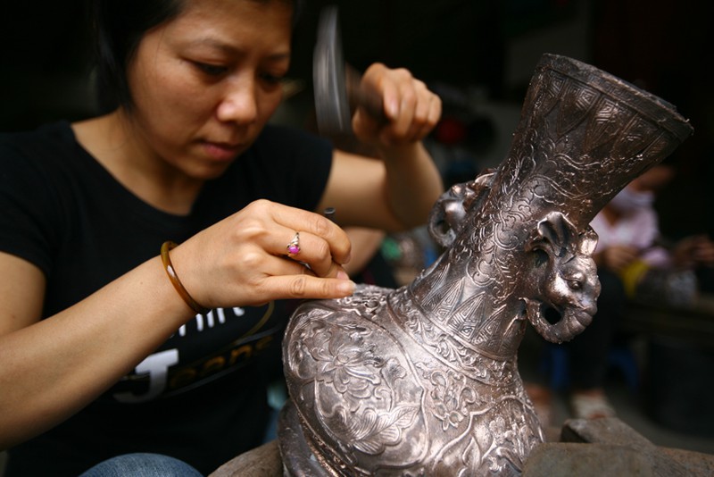 Ở đó có những làng nghề thủ công mỹ nghệ vốn có truyền thống lâu đời, với nhiều nét độc đáo, tinh xảo, hoàn mỹ, tiêu biểu như: Làng gốm Bát Tràng, gốm Kim Lan, lụa Vạn Phúc, tranh dân gian Hàng Trống, tranh thêu Quất Động, đúc đồng Ngũ Xã, tạc tượng Sơn Đồng, quạt giấy Chàng Sơn, nghề mây tre đan, may, thêu, vẽ, truyền thần, múa rối… Tất cả tinh hoa của các nghệ nhân của làng nghề, phố nghề đã làm nên những nét văn hóa đặc sắc của Thủ đô.