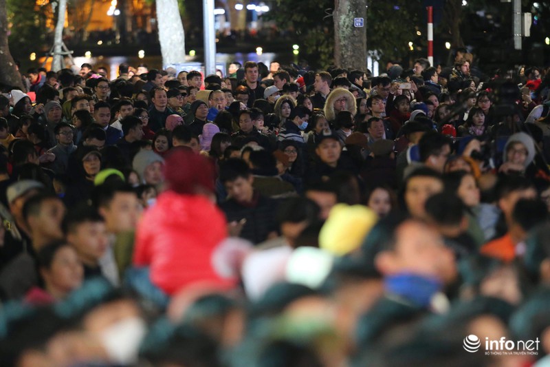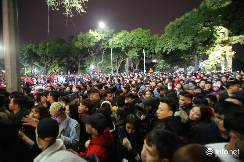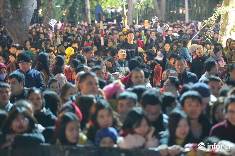 Gần đến khoảnh khắc 0h ngày 01/01/2019, không khí quanh khu vực Hồ Gươm càng thêm sôi động. Cả biển người chật cứng đón năm mới, xua tan giá rét của đêm đông.