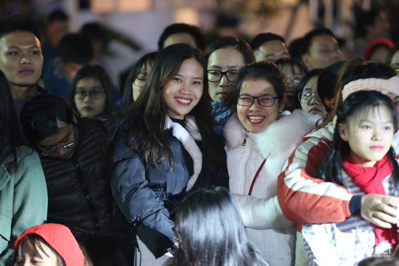 Bất chấp thời tiết giá rét với nhiệt độ ngoài trời khoảng 12 độ C, người dân Thủ đô Hà Nội đã dồn về khu vực Bờ Hồ, nơi tổ chức sân khấu Countdown để cùng đếm ngược chào đón năm mới 2019: