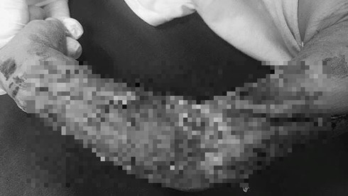 Cánh tay dập nát của cháu bé sau 2 lần ghép da |