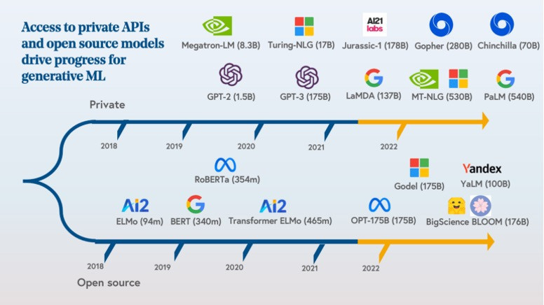 Chúng ta có thể lựa chọn mô hình nguồn mở Bloom hay OPT-175B của Meta, tương đương với ChatGPT cho mô hình quốc gia. Những cải tiến trong LLL bắt đầu với sự giới thiêu công nghệ Transformer (2107) là kết quả của nhiều thập kỷ đổi mới máy học và máy tính cũng như những tiến bộ công nghệ và việc triển khai đòi hỏi:
