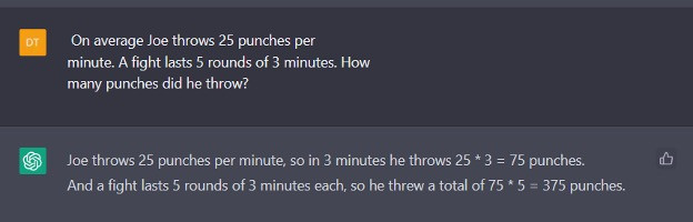 “Trung bình Joe tung 25 cú đấm mỗi phút. Một cuộc chiến kéo dài 5 hiệp 3 phút. Anh ta đã tung ra bao nhiêu cú đấm?”