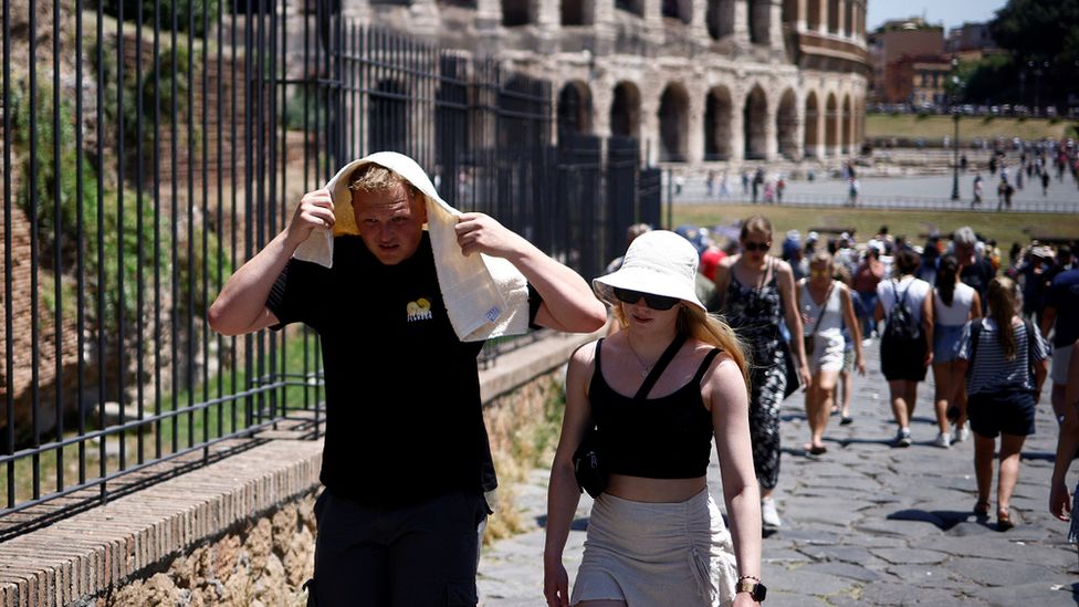 Tại Rome, một số khách du lịch đã ngã quỵ trong tuần trước do say nắng, trong đó một du khách người Anh bất tỉnh trước Đấu trường La Mã cổ đại hôm 11/7.