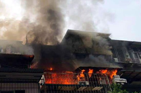Khi đó, lửa bùng lên kèm theo khói từ khu "chuồng cọp" cơi nới tại một căn hộ, sau đó lan nhanh và bốc thành đám cháy lớn.