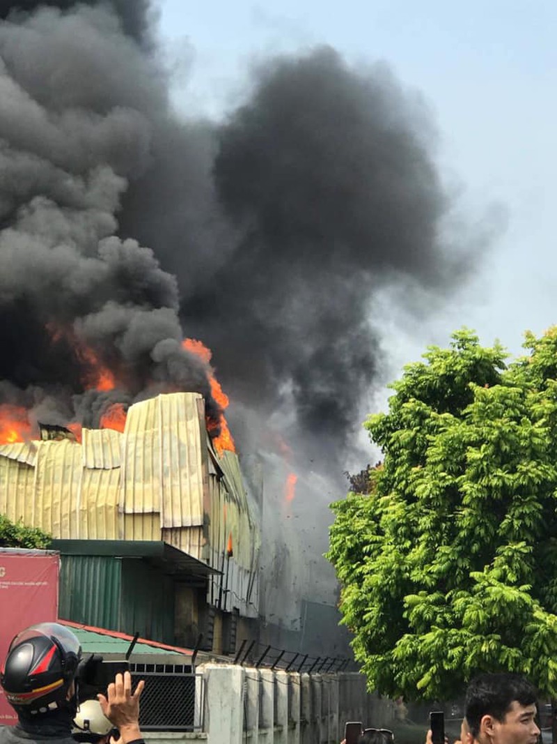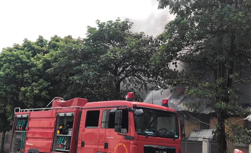 Đến 10h cùng ngày công tác cứu hộ vẫn đang được tiến hành khẩn trương dập lửa. Một dãy nhà xưởng lợp tôn của Công ty này bị lửa bao phủ, khói bốc ra cuồn cuộn.