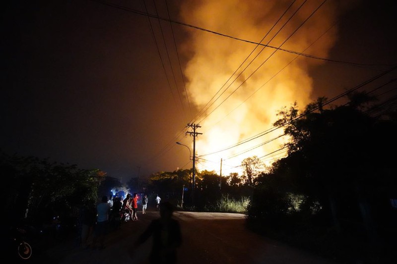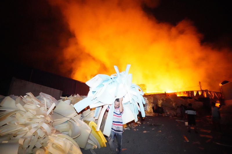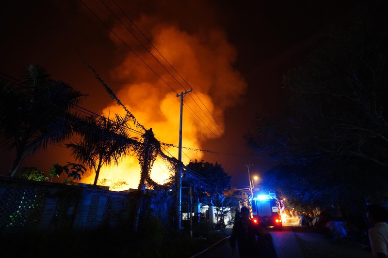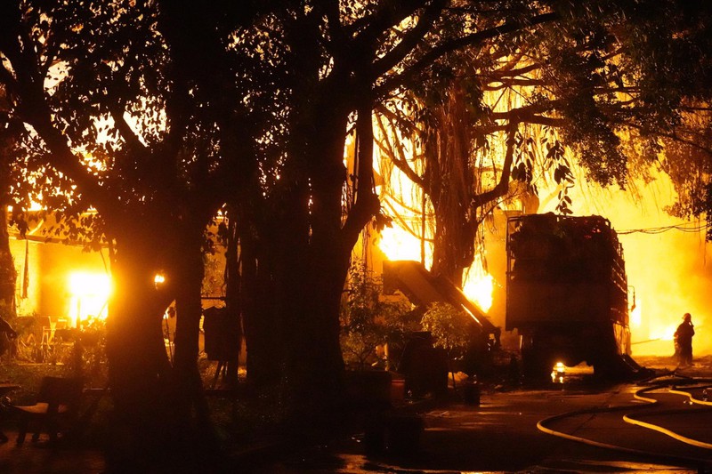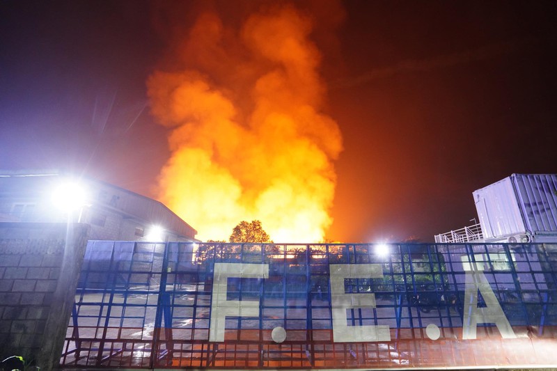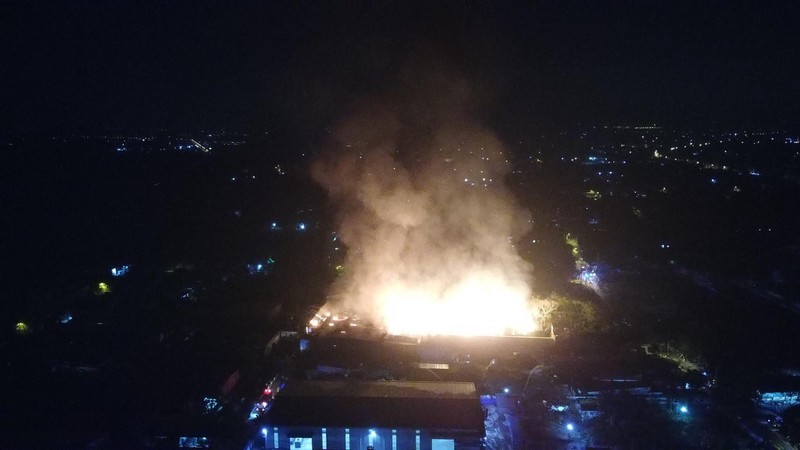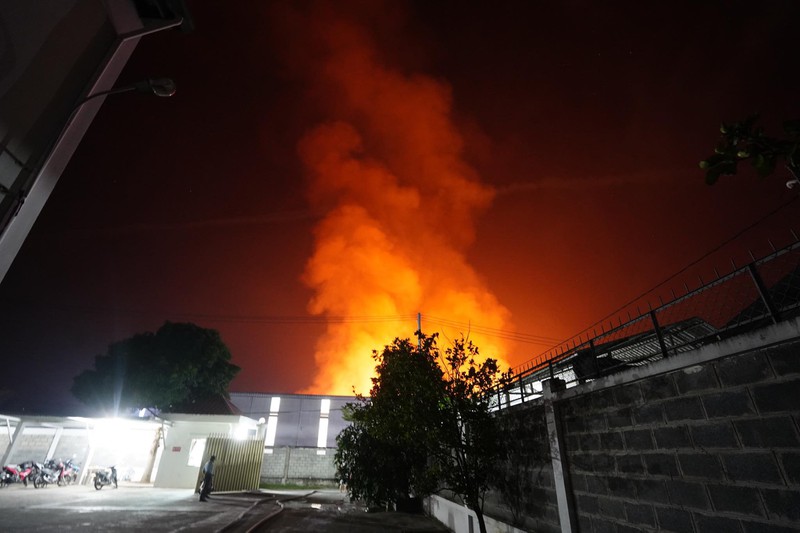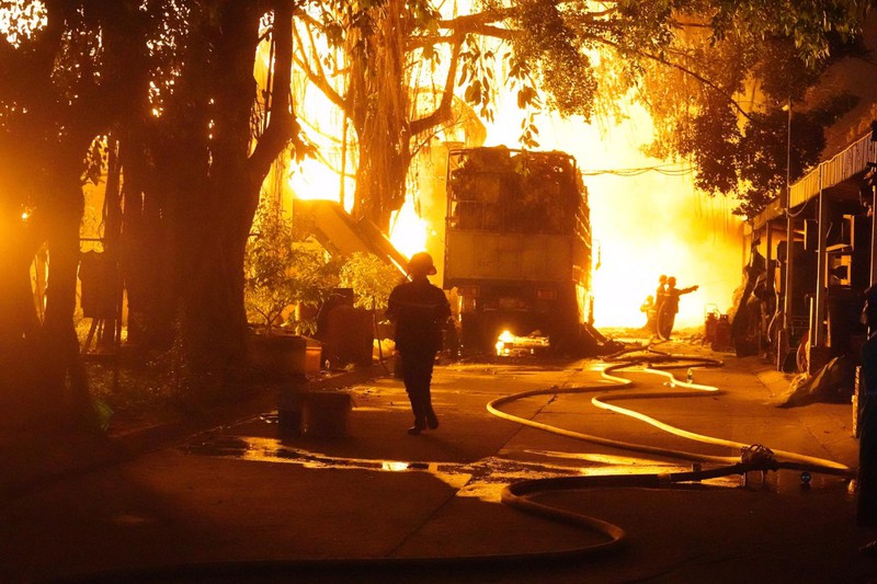 Ngọn lửa bốc lên dữ dội tại Công ty Phú Thịnh, chuyên về nệm ghế ở đường 429, ấp 1, xã Phước Vĩnh An, huyện Củ Chi. Hơn 4 tiếng phun nước vào đám cháy, lực lượng chức năng vẫn chưa thể khống chế được ngọn lửa.