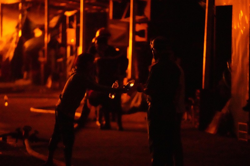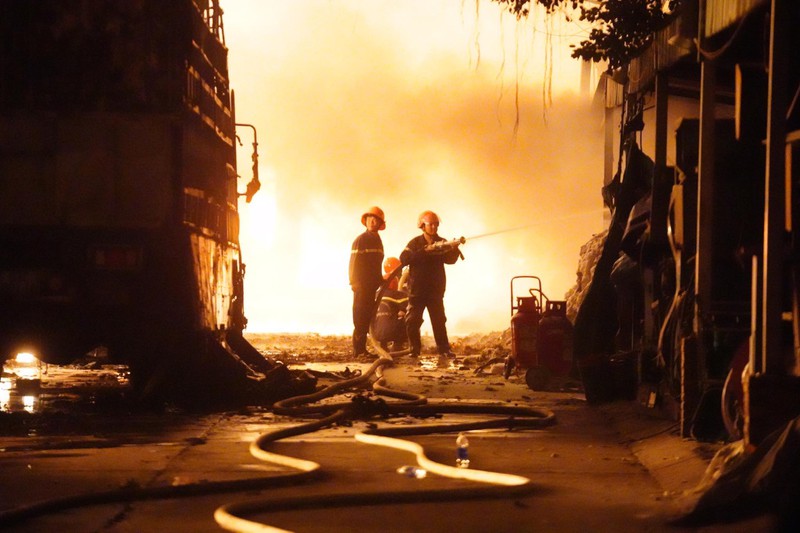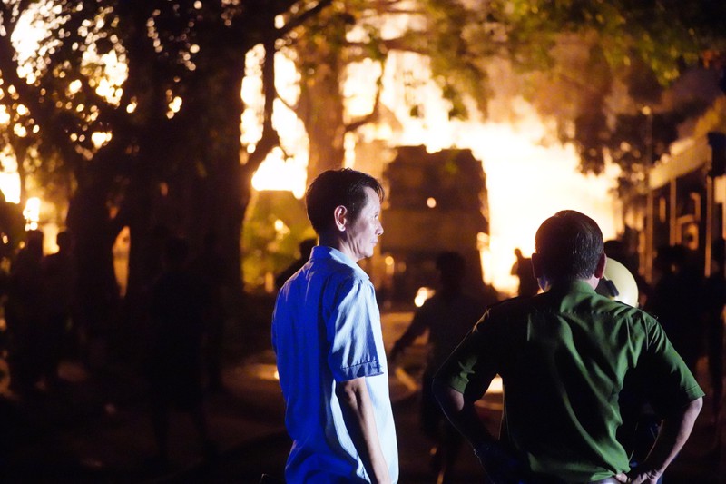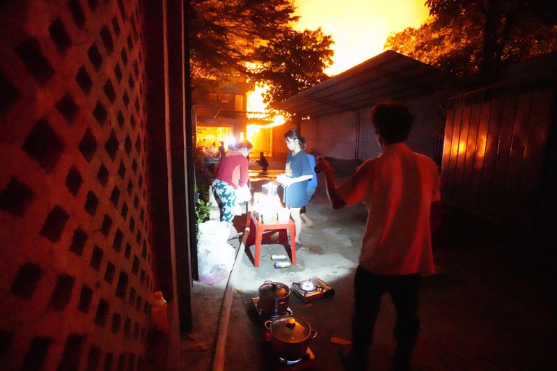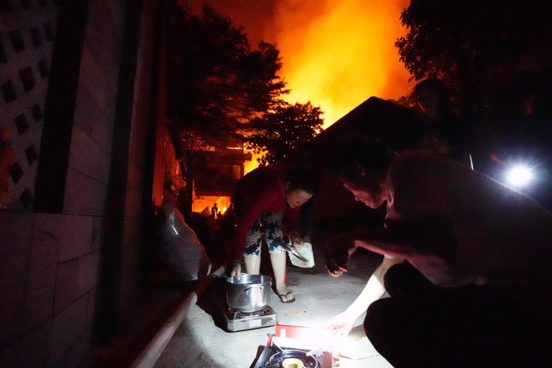 1h05, các lực lượng chức năng vẫn tích cực cô lập đám cháy, tránh để lửa lan rộng... Người dân tổ chức nấu mì tại hiện trường cũng như cung cấp nước uống cho các chiến sĩ phòng cháy chữa cháy.