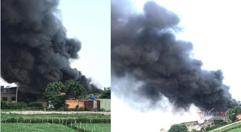 Hiện trường vụ hỏa hoạn với cột khói đen kín đặc cả bầu trời. |
