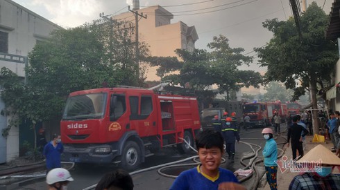 Cảnh sát PCCC TP.HCM phải điều động hơn 10 xe cứu hỏa cùng trăm cảnh sát từ nhiều đơn vị thuốc quận Bình Tân, Tân Phú, quận 6... tới tại hiện trường để triển khai phương án dập lửa.