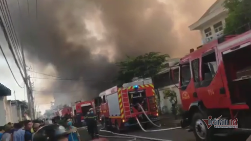Cháy lớn nhà xưởng, khói đen kín đặc ngoại ô Sài Gòn nhiều giờ liền