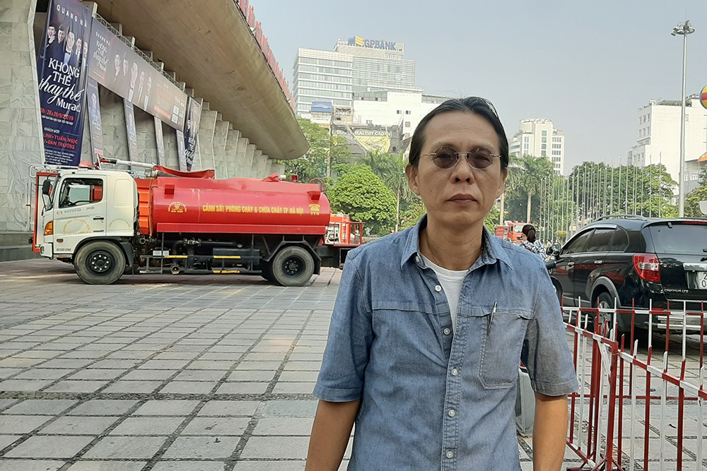 "Sự việc xảy ra là do hệ thống sửa chữa chống thấm, do đơn vị thi công rất ẩu, họ làm cho sập cả tầng xuống. Cái trần nằm ngay sân khấu làm cho toàn bộ sân khấu bị sập hết và gần như là tan tành".
