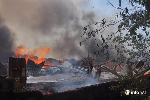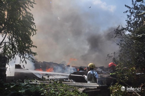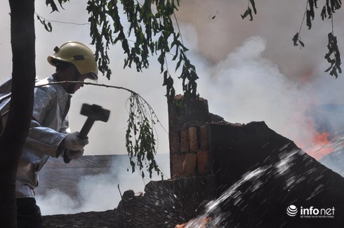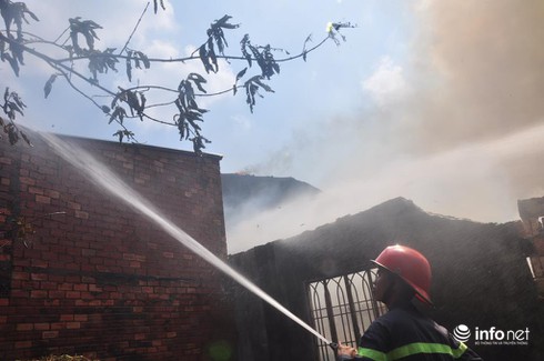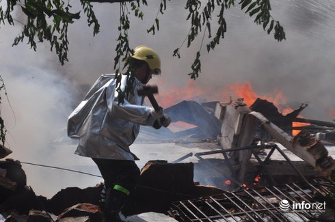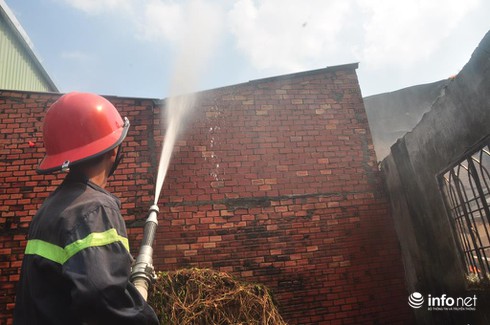 Do vụ cháy quá lớn, lực lượng cứu hỏa đã chia thành nhiều mũi tiếp cận hiện trường. Một mặt các chiến sĩ phun vòi nước để tránh vụ cháy lan sang các hộ dân, mặt khác các chiến sĩ đập tường.