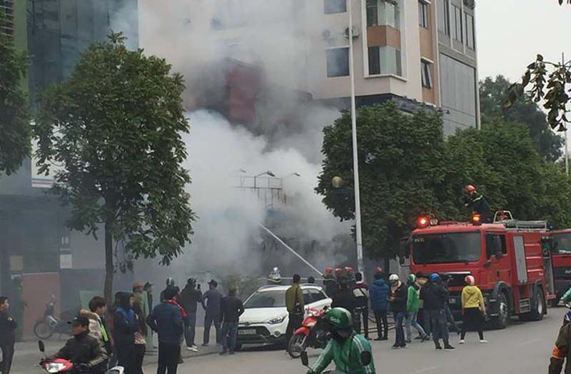 Vụ cháy xảy ra vào khoảng hơn 8h ngày 18/1, tại quán cháo ếch Singapore kiêm kinh doanh cafe trên đường Nguyễn Văn Huyên, phường Quan Hoa, quận Cầu Giấy, Hà Nội.
