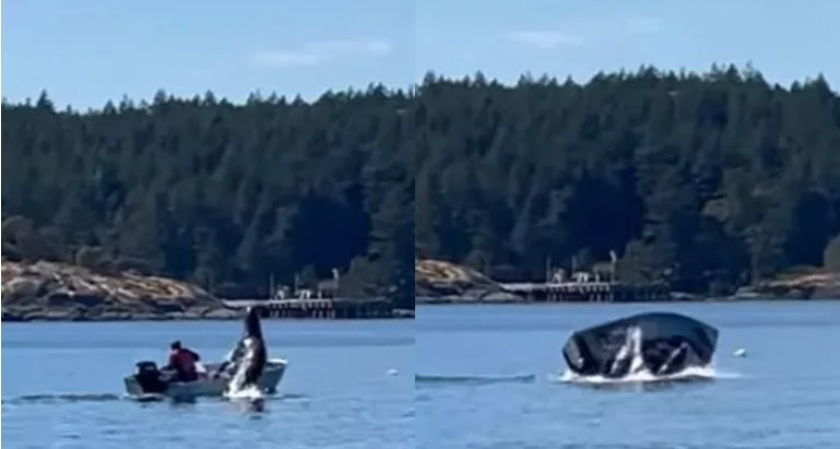 Video chia sẻ trên mạng xã hội cho thấy con sư tử biển đang trên đường chạy trốn khỏi đàn cá voi sát thủ. Nhưng vì sư tử biển quá nặng và tính toán sai vị trí hạ cánh khiến chiếc thuyền bị nghiêng, cả sư tử biển và người ngồi trên đều rơi thẳng xuống nước.