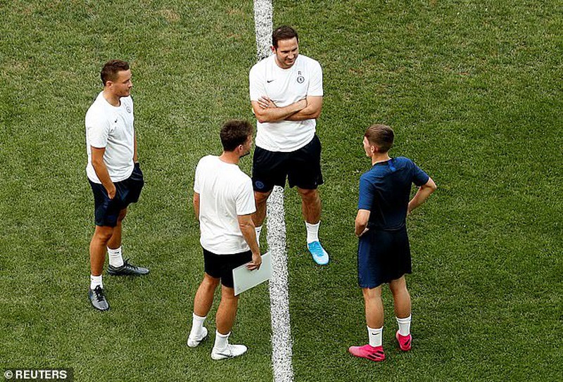 Lampard chỉ cho các cầu thủ khởi động nhẹ nhàng. |