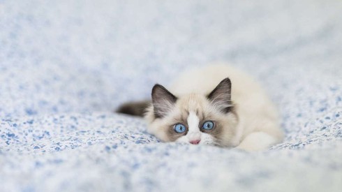 Bộ gen quy định màu lông đặc trưng của mèo Ragdoll cũng quy định màu mắt xanh của chúng. Ảnh: blogyeuchomeo |