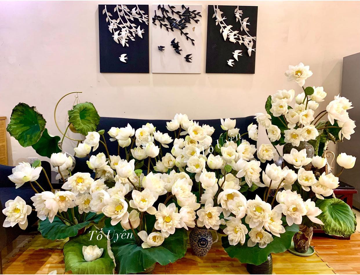 Một số hình ảnh các đầm sen đẹp được cắm trong nhà:
