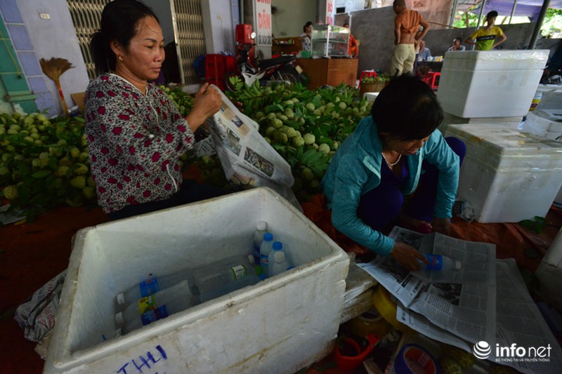 Na được đóng vào các thùng xốp có lót giấy báo cẩn thận, sau đó được xếp lên từng xe tải để chuyển đi các tỉnh khắp miền Bắc. Khối lượng mỗi thùng na sau khi được đóng gói cẩn thận khoảng từ 20-30kg/ thùng. Anh Nguyễn Hữu Ước (một đầu mối na tại chợ Chi Lăng) cho biết, mỗi năm nhà làm đầu mối thu mua hơn 10 tấn na, giá na khá phong phú tùy thuộc vào từng loại khác nhau, na càng lớn giá càng đắt. |