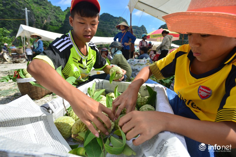 Mùa na cũng là mùa làm thêm của nhiều em nhỏ tại địa phương. Anh em Hoàng Đức Mạnh (15 tuổi) và Hoàng Tùng Lâm (13 tuổi) theo mẹ xuống chợ phụ làm thuê đóng gói na. "Do đang được nghỉ hè nên anh em em tranh thủ khoảng hơn 1 tháng mùa na đi làm đóng gói thuê kiếm thêm ít tiền phụ giúp cha mẹ. Mỗi ngày, thu nhập của chúng em từ việc xếp na khoảng 50.000-60.000 đồng, làm đến hết mùa thì chúng em cũng lo được một khoản nhỏ để chuẩn bị cho năm học mới" - Lâm chia sẻ. |