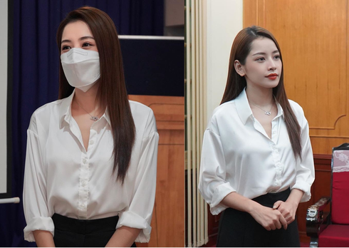 Cô ăn mặc giản dị với áo sơ mi và quần âu màu đen, trang điểm nhẹ nhàng và bịt khẩu trang kĩ lưỡng khi đến gặp lãnh đạo các cơ quan.