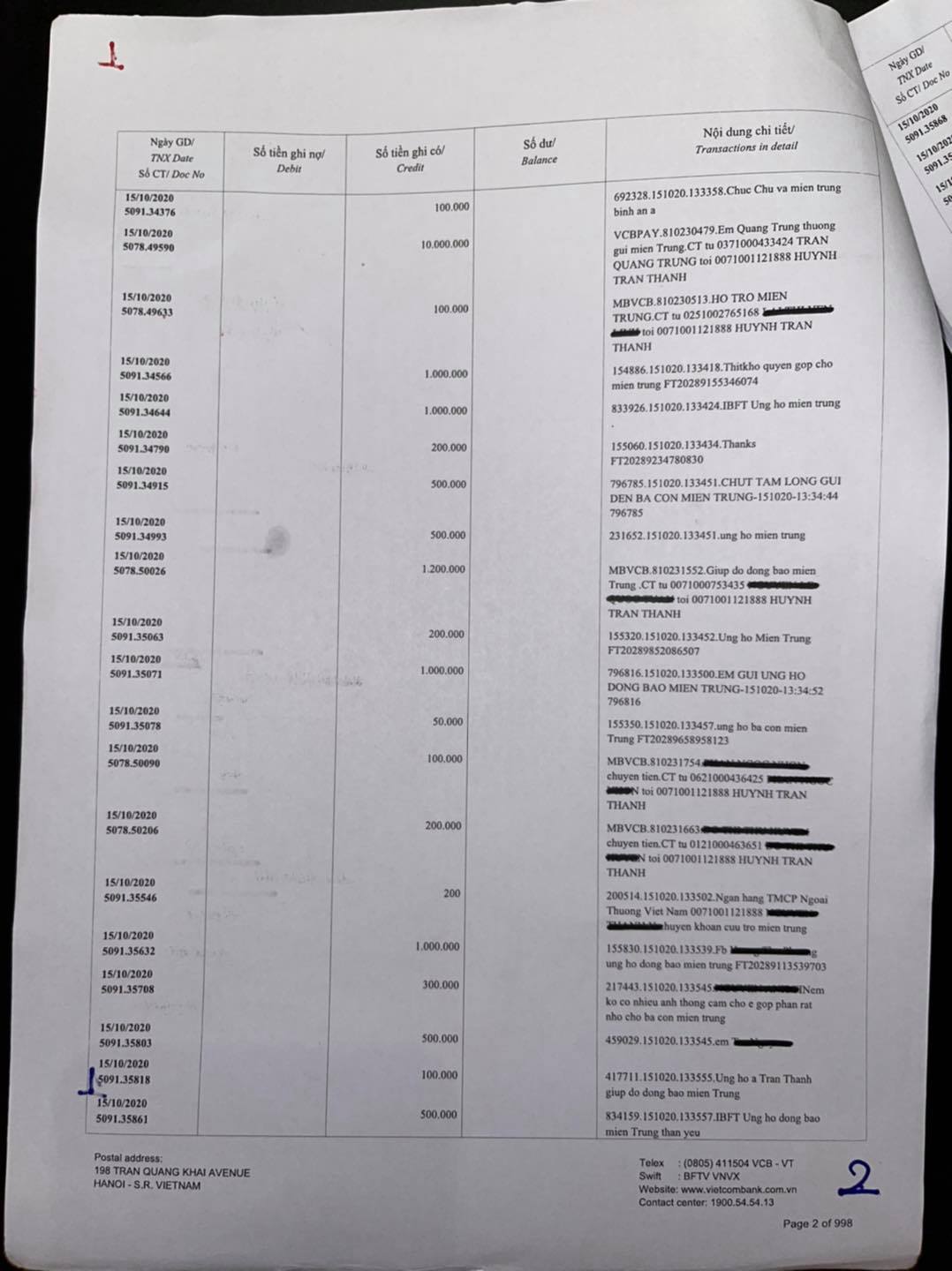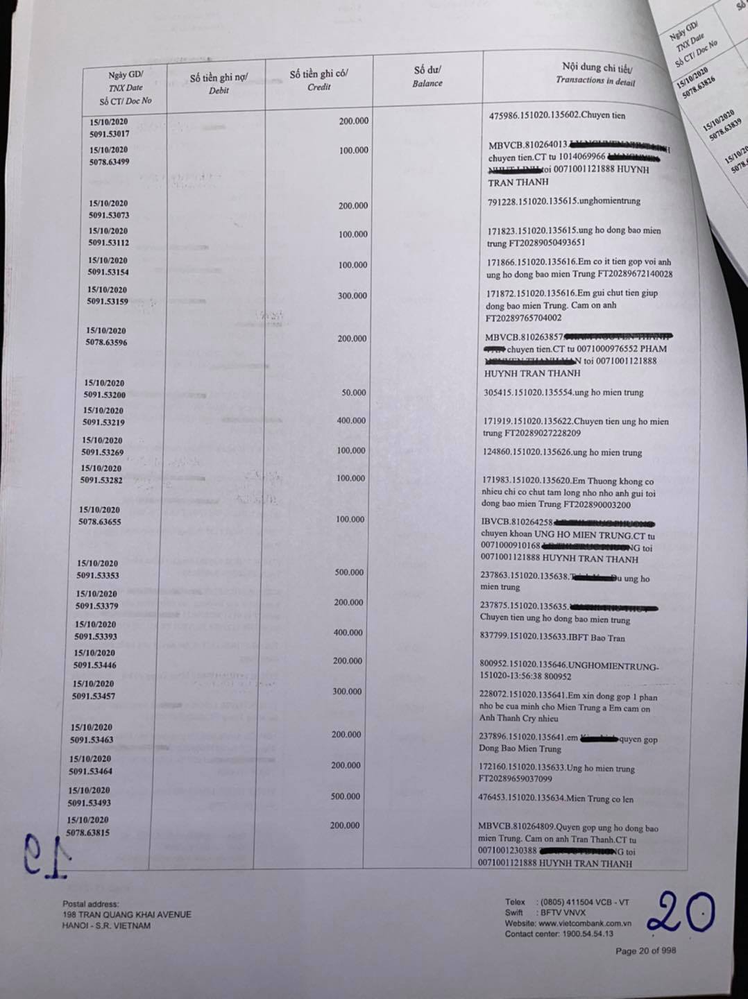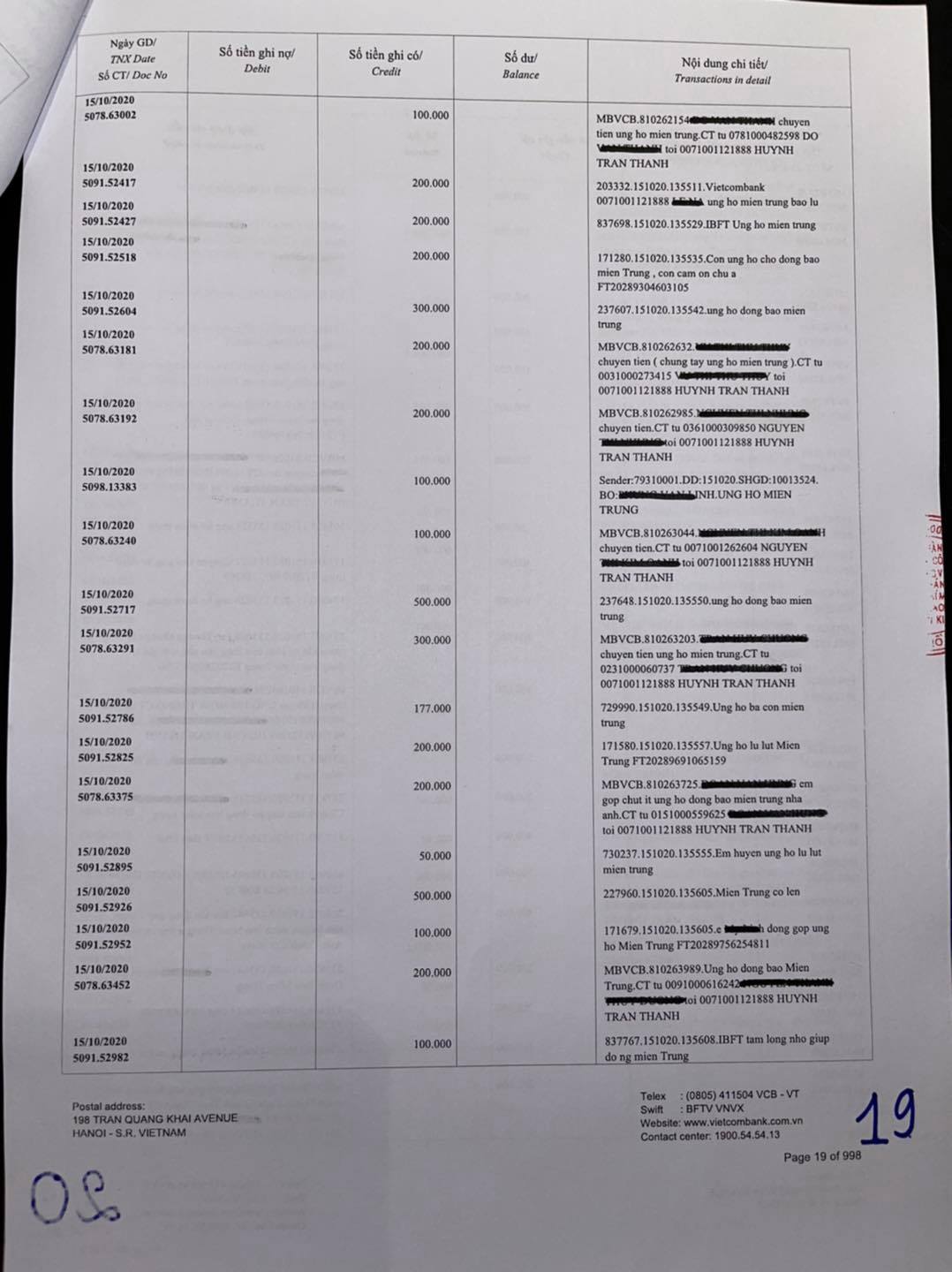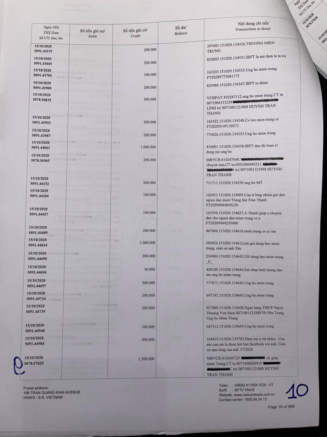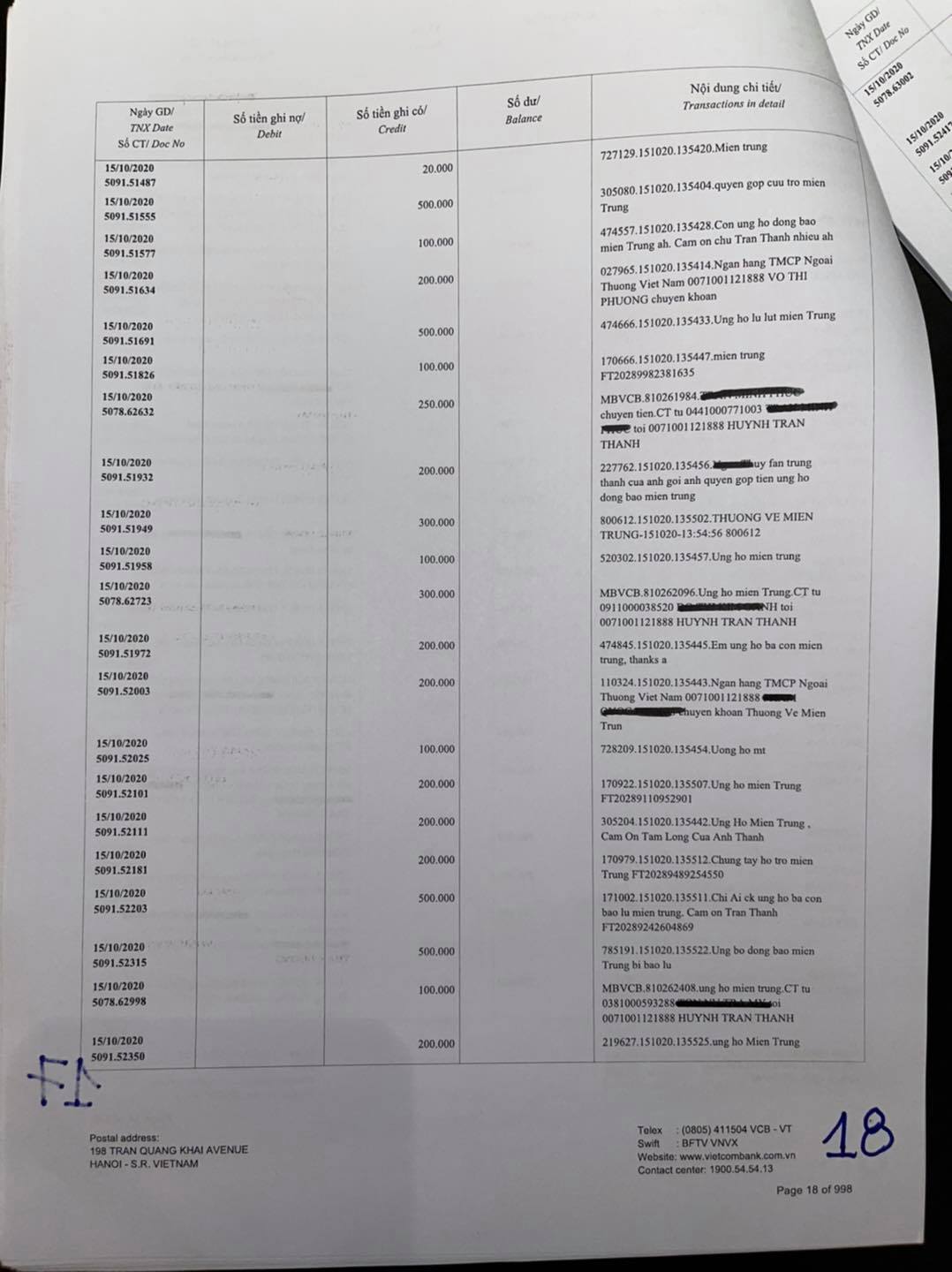 Toàn bộ 100 trang sao kê Trấn Thành cập nhật lần 1: