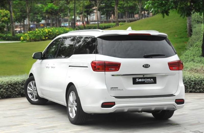 Phần đuôi xe của Kia Sedona phiên bản mới được thiết kế tinh tế với phần kính đen vuốt từ cửa hông tới kính cốp sau tạo cảm giác hài hòa và sang trọng. Phiên bản mới được nâng cấp với cửa hông trượt điện và cốp sau đóng mở điện thông minh.