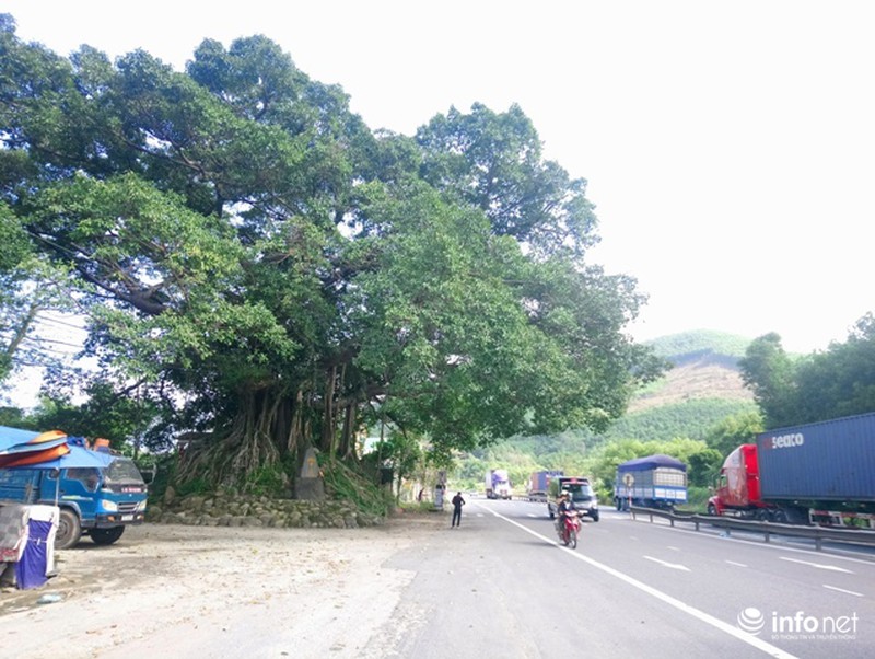 Hình ảnh cây đa tía nằm sát bên QL1A đoạn qua thị trấn Phú Lộc (huyện Phú Lộc, tỉnh Thừa Thiên Huế). |