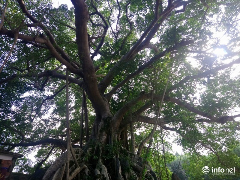 Không chỉ nhiều rễ, cây đa còn nhiều cành tán lá xum xê che mát |