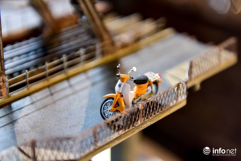 Anh Vỹ chia sẻ: "Cây cầu này được tôi vận chuyển ra Hà Nội bằng đường hàng không, vì nếu lựa chọn gửi ô tô thì rất rủi ro. Chỉ một va chạm nhỏ cũng có thể phá vỡ mô hình đặc biệt này". |