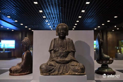 Khu triển lãm văn hóa cổ vật Phật giáo nằm ở hầm điện Tam Thế với diện tích lên đến 800 m2.