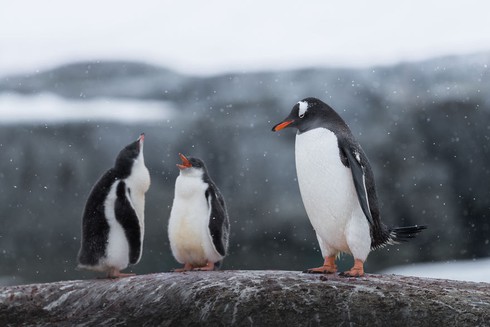 Ba mẹ con chim cánh cụt tại Nam Cực |