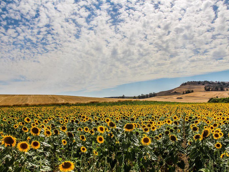 Bên ngoài thị trấn Carmona của Tây Ban Nha, những cánh đồng hoa hướng dương trải rộng 5.000 ha. Những bông hoa hướng dương nở rộ từ tháng 5 đến tháng 7. |