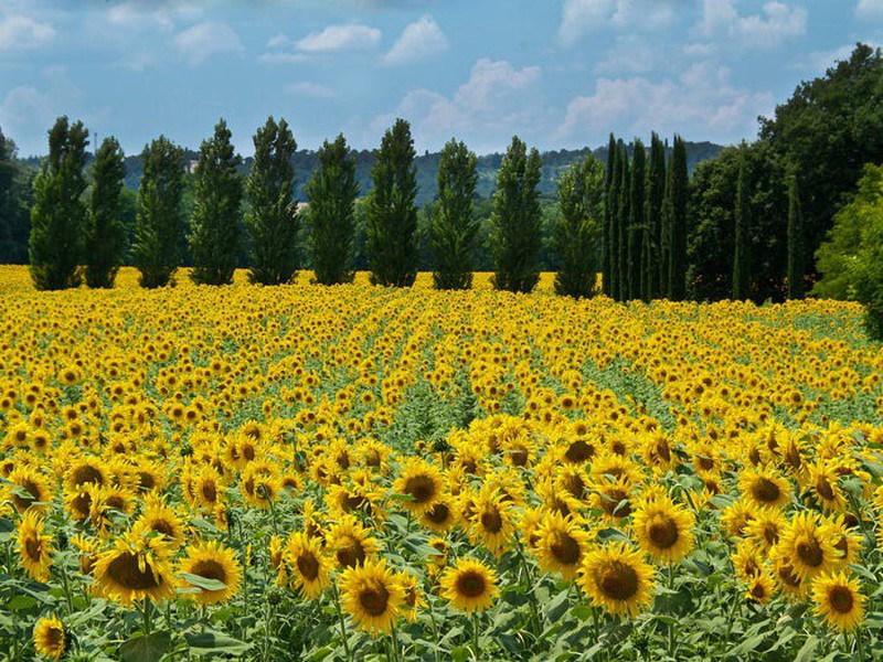 Tuscany, Italy nổi tiếng với những cánh đồng hoa hướng dương tuyệt đẹp. Những bông hoa hướng dương nở rộ vào giữa tháng 6 đến đầu tháng 8. |