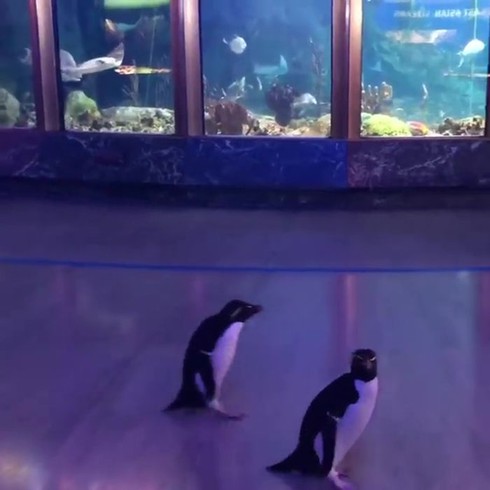 Tuy nhiên, thủy cung không hoàn toàn trống rỗng 'vắng du khách' vì gần đây, khách du lịch là người đã được thay thế bằng chim cánh cụt. Có lẽ là lần đầu tiên, những con chim này được thả ra để tự do đi lại khám phá các ngõ ngách tại thủy cung.