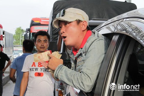 Tài xé trả tiền lẻ tại Trạm BOT Cai Lậy, tỉnh Tiền Giang. Ảnh: Sỹ Đồng. |