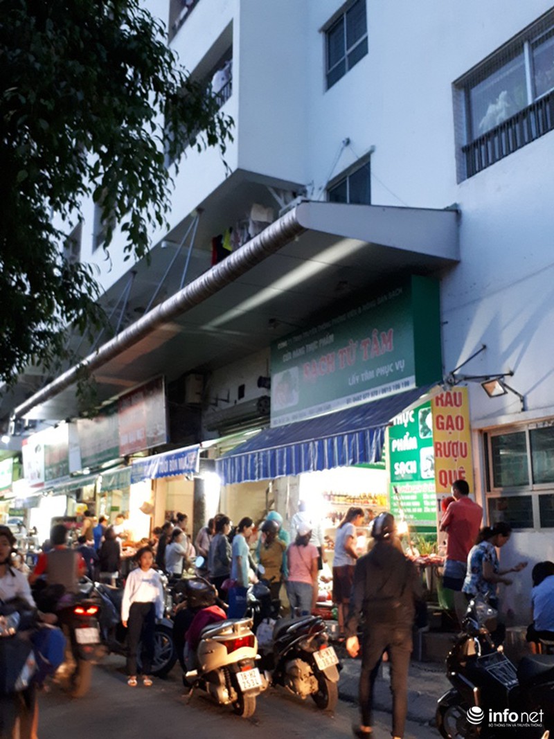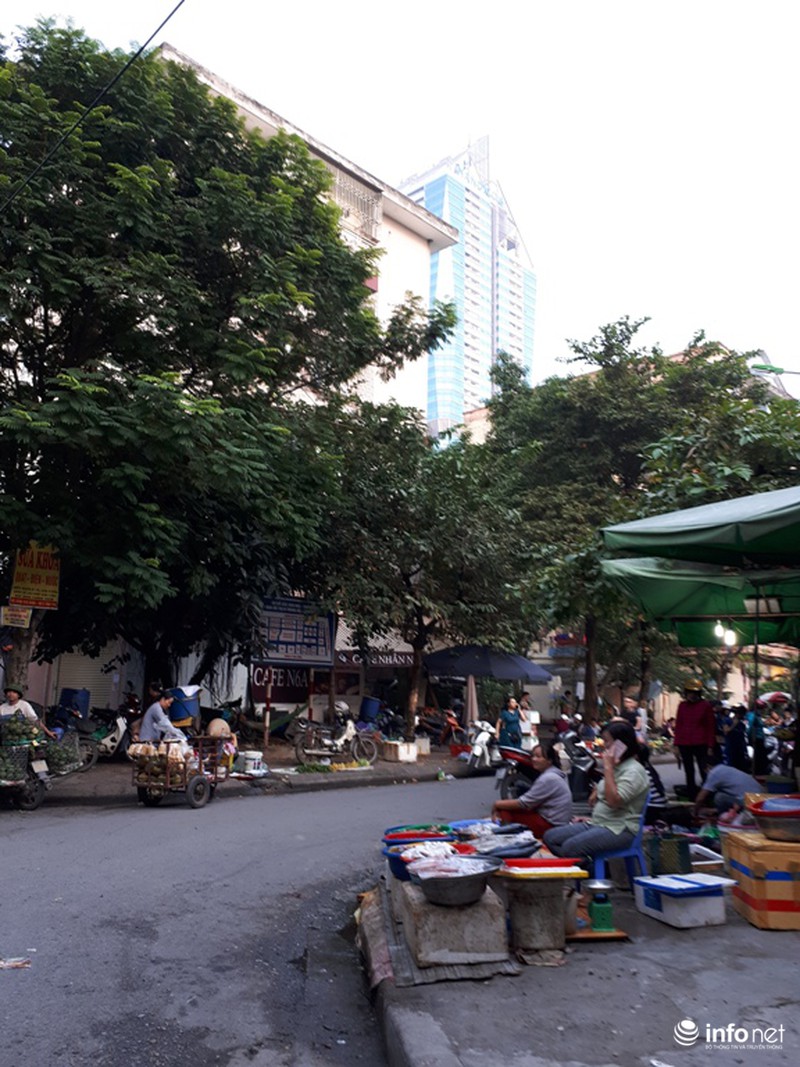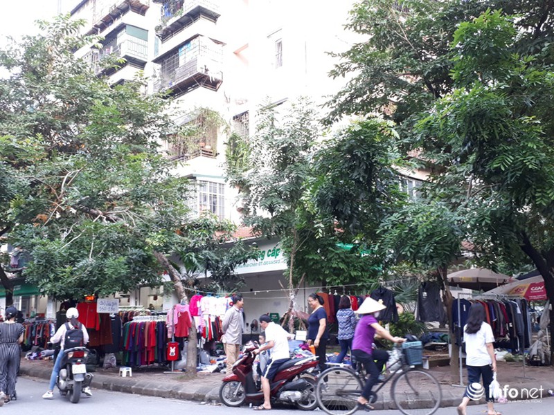 Khu chợ cóc này hoạt động từ sáng sớm đến tối mịt phục vụ chủ yếu nhu cầu mua bán của người dân sinh sống tại các tòa nhà trong khu đô thị Trung Hòa – Nhân Chính. |