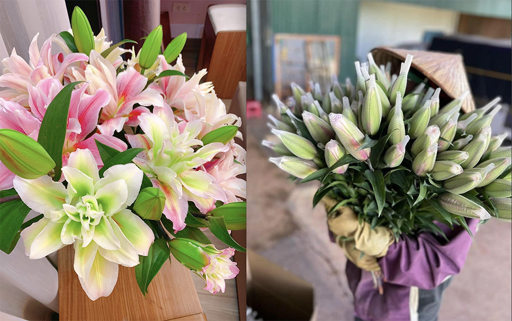 “Đúng là chợ ngày Tết, giá hoa tăng dựng đứng. Cách đây nửa tháng, cũng loại hoa ly kép đỏ này tôi mua giá chỉ 260.000 đồng/10 cành, phí ship 10.000 đồng. Hôm nay, giá tăng gấp 4 lần”, chị nói.