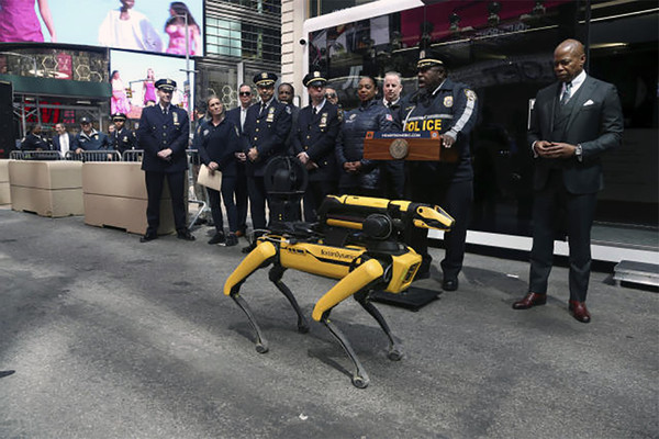 Tại buổi họp báo giới thiệu các thiết bị mới ở Quảng trường Thời đại ngày 12/4, Ủy viên cảnh sát Keechant Sewell tuyên bố, chó robot, thiết bị theo dõi định vị GPS dành cho xe hơi bị đánh cắp và robot an ninh hình nón sẽ được triển khai theo cách “minh bạch, nhất quán và luôn được thực hiện gắn kết chặt chẽ với đối tượng phục vụ”.