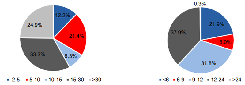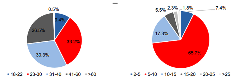 Từ trái sang phải: Quy mô khoản vay (triệu đồng) và thời hạn khoản vay (tháng) của HD Saison |