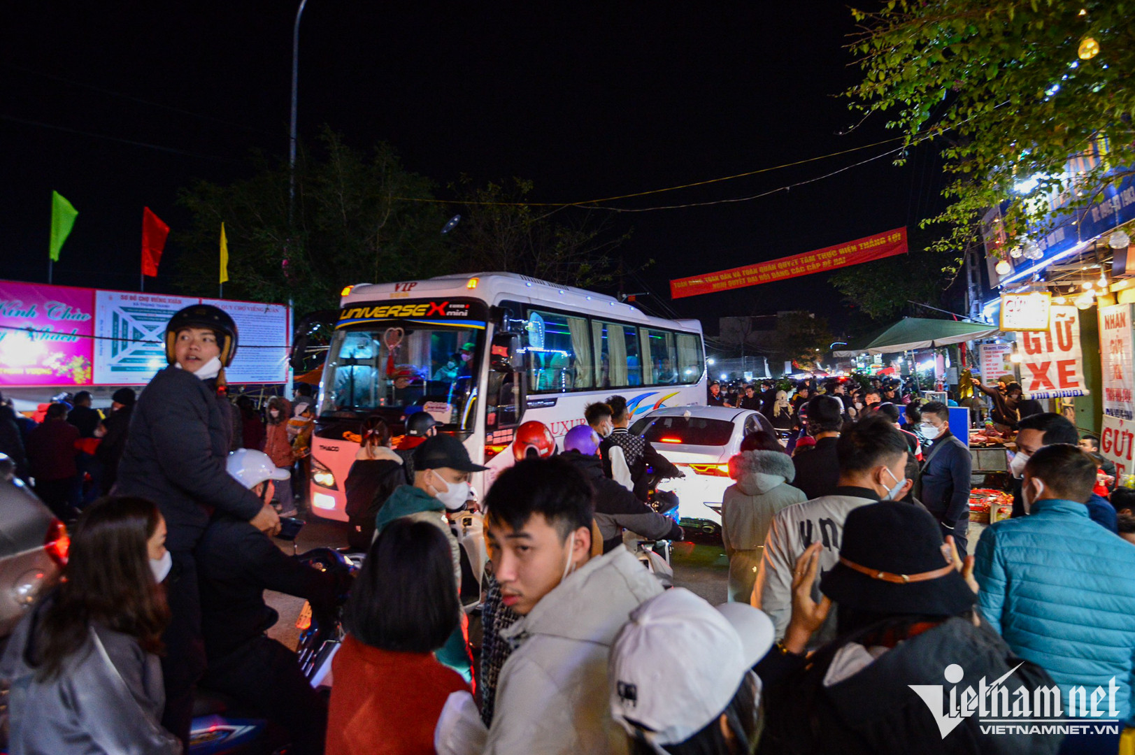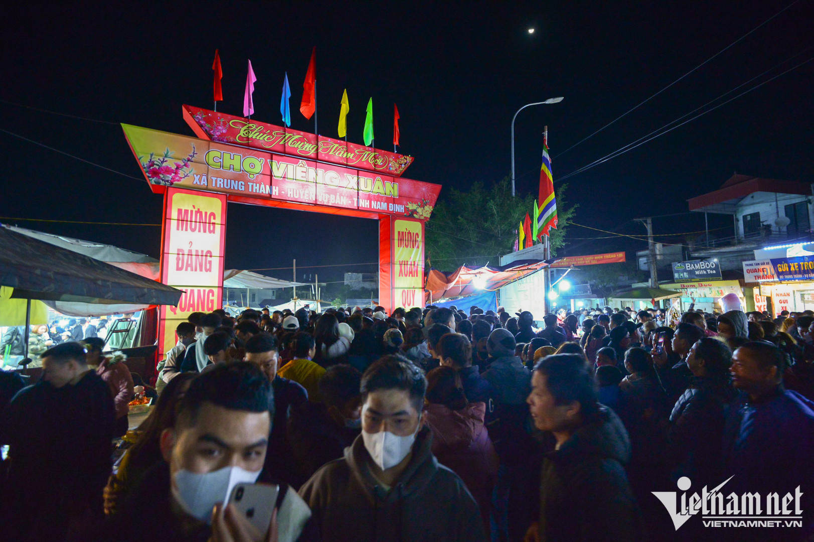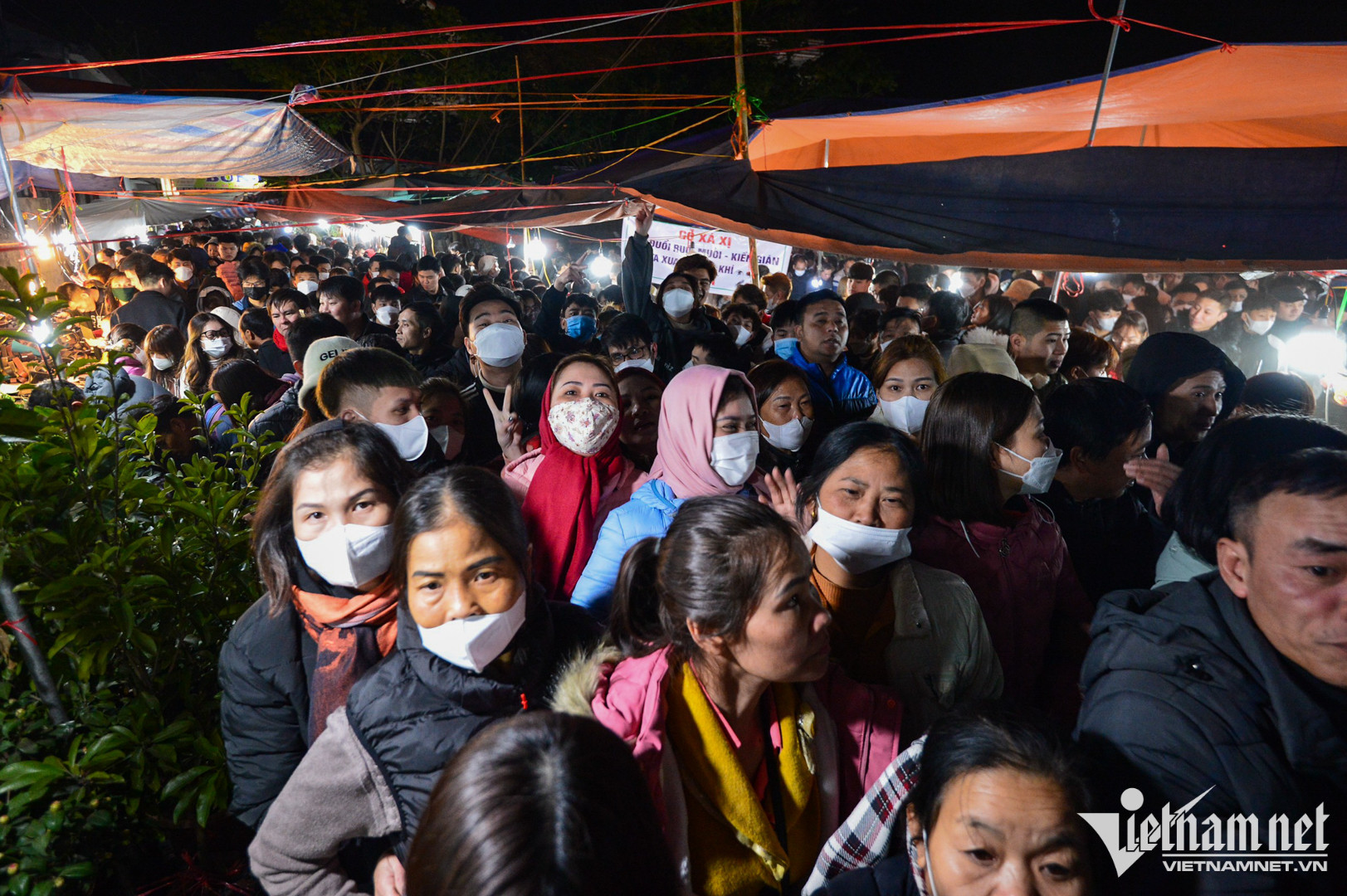 Từ 21h đến 23h tối 28/1, hàng nghìn người tràn vào trong chợ Viềng Phủ mua sắm.