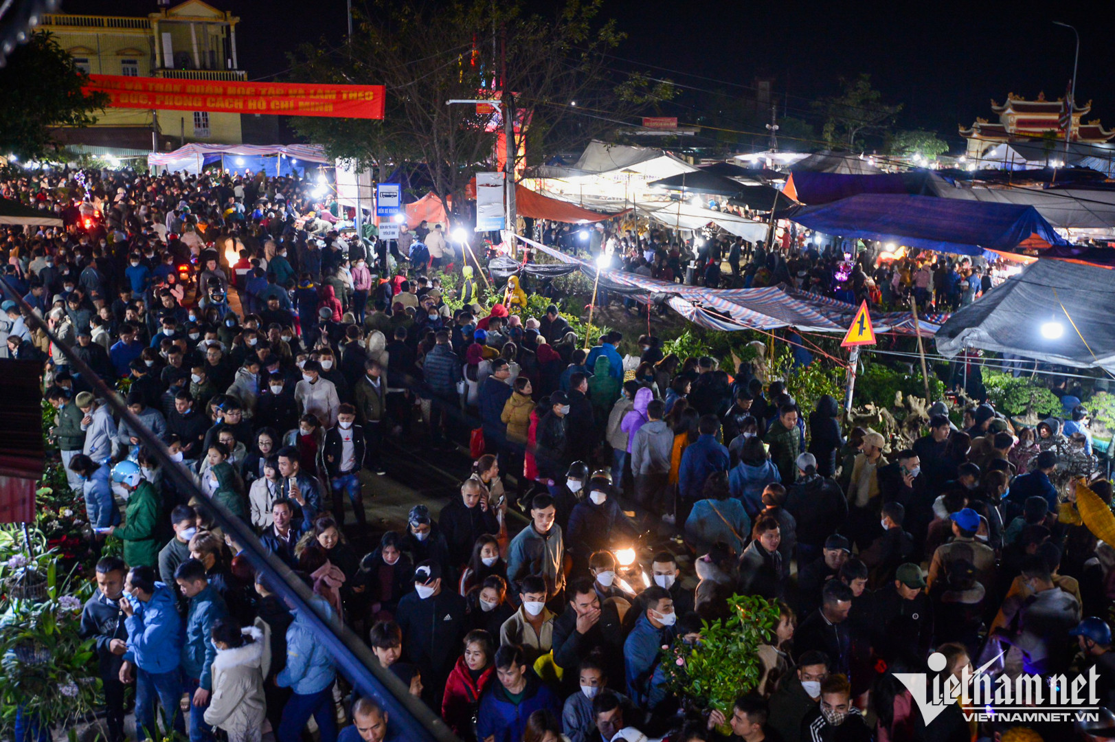 Sau 3 năm không hoạt động vì ảnh hưởng của đại dịch Covid-19, Lễ hội chợ Viềng (Nam Định) vừa được tổ chức trở lại. Từ tối 28/1 (mùng 7 Tết), du khách thập phương ùn ùn kéo về tạo nên khung cảnh ken đặc người ngay từ ngoài cổng.
