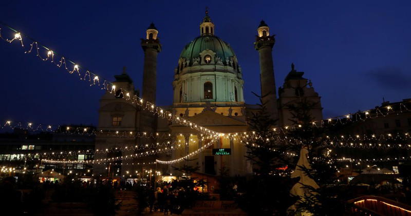 Một phiên chợ Giáng sinh ở Karslkirche, Vienna, Áo. |