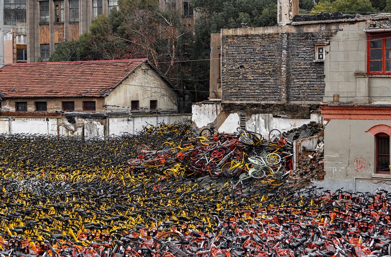 Hình ảnh "núi xe đạp rác" dần trở thành một cảnh tượng quen thuộc ở nhiều thành phố lớn khi có quá nhiều xe hoặc bị hỏng hoặc thừa thãi bị bỏ đi.