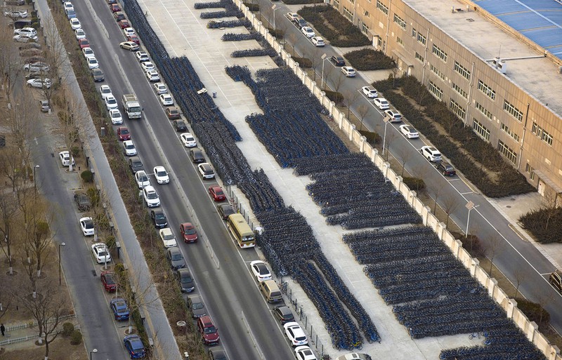 Đây không phải là cánh đồng hoa tulip rực rỡ sắc màu mà chính là một bãi xe đạp ở Thượng Hải |