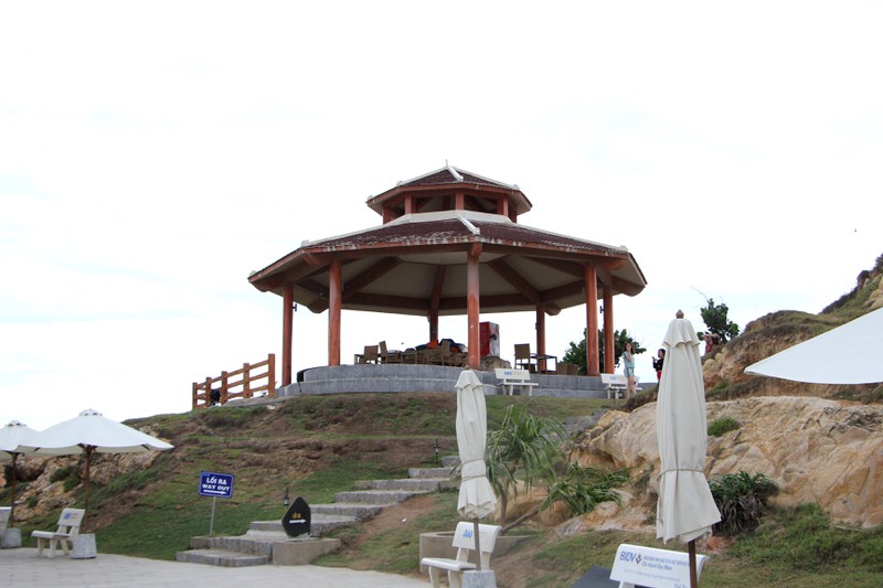 Nếu không muốn tựa vào vách đá ngắm hoàng hôn, du khách có thể lên trên một chiếc lầu kiên cố phía trên đỉnh núi.
