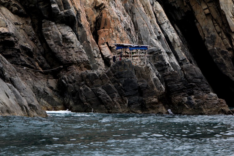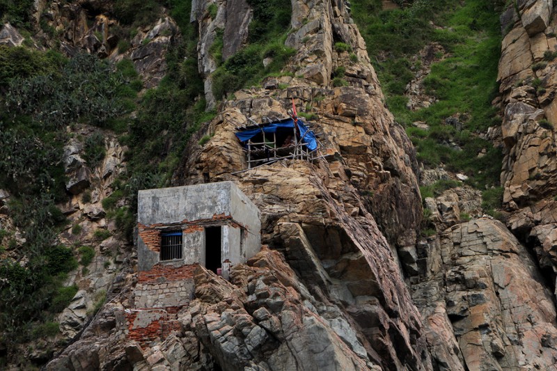 Những căn chòi cheo leo trên vách núi của những người nuôi yến. Đây là vùng có số lượng hang yến nhiều thứ hai tại nước ta - chỉ sau Nha Trang.