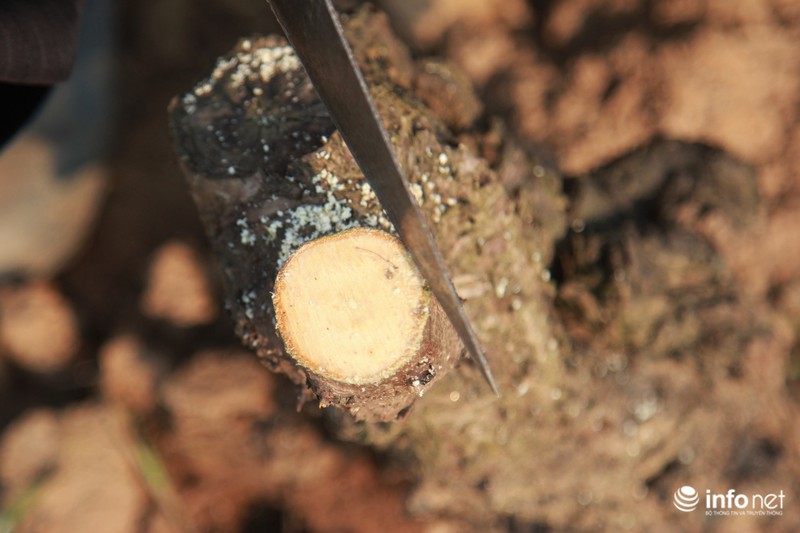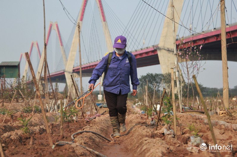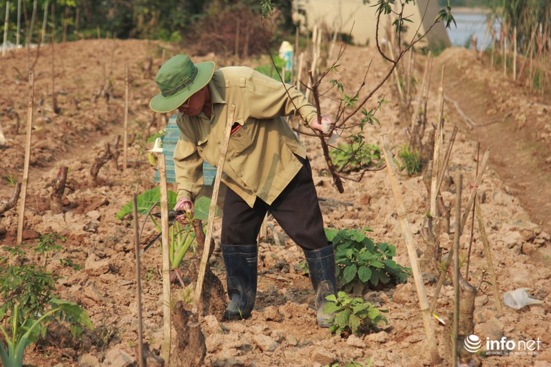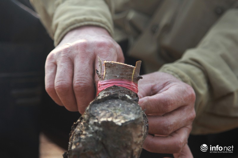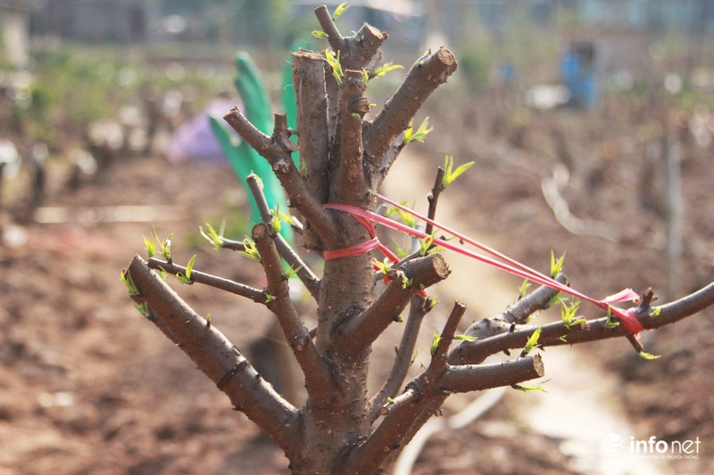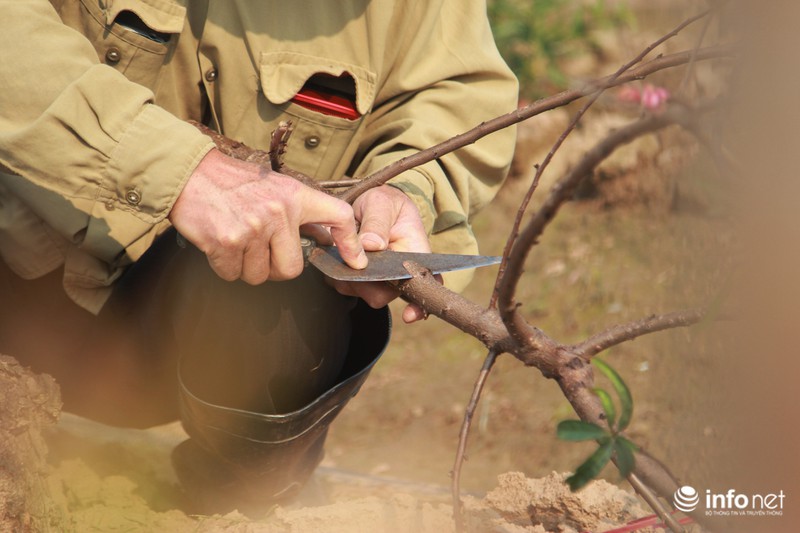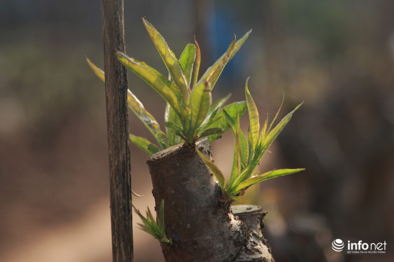 Ngay ra Giêng, người dân phải thường xuyên kiểm tra các gốc đào, kiểm tra từng chồi non để chọn sẽ ươm cành cho mùa đào tiếp theo. |