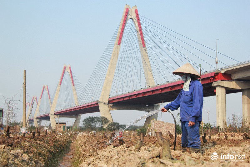 Có mặt tại làng trồng đào Nhật Tân - ngay dưới chân cây cầu Nhật Tân (quận Tây Hồ, Hà Nội) những ngày này, không khí rất tất bật, bận rộn của người dân đã trở lại với việc hồi sinh những gốc đào. |