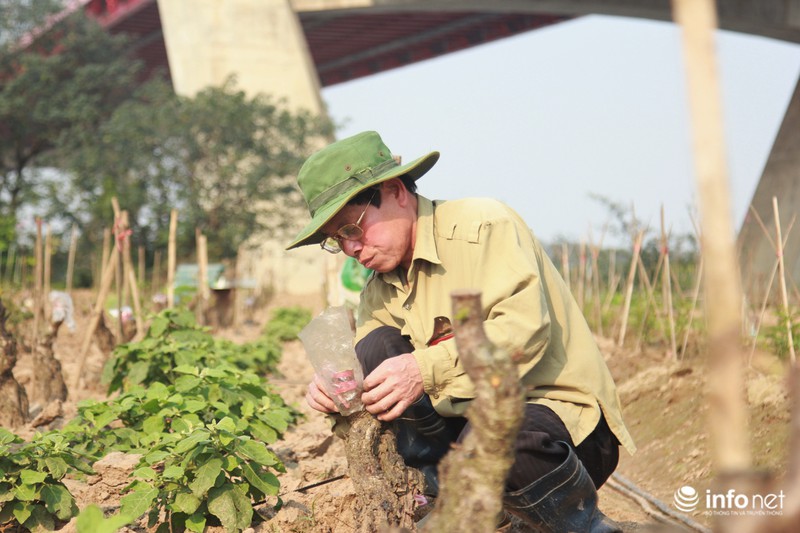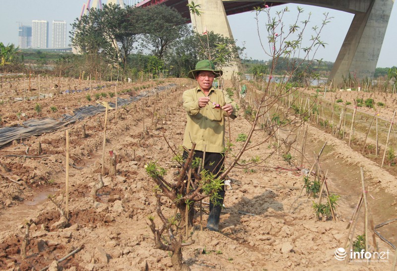 Ông Nguyễn Văn Hiện (64 tuổi, người làng Phú Xá, phường Phú Thượng, Tây Hồ, Hà Nội), sau khi kiểm tra các gốc đào niềm nở cho hay:“Sau khi ăn Tết Nguyên đán xong là chúng tôi bắt tay ngay vào việc hồi sinh các cành đào mới trên các gốc đào cũ. 300 gốc đào của gia đình tôi đến hôm nay đều đã nảy mầm để phục vụ Tết năm tới”. |