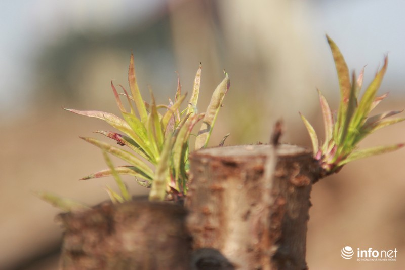 Ghi nhận của PV Infonet vào một buổi chiều nắng đẹp (chiều 18/2), tức 25 tháng Giêng, các chồi non ở các gốc đào Nhật Tân đã mọc trở lại để đón mùa Xuân. |